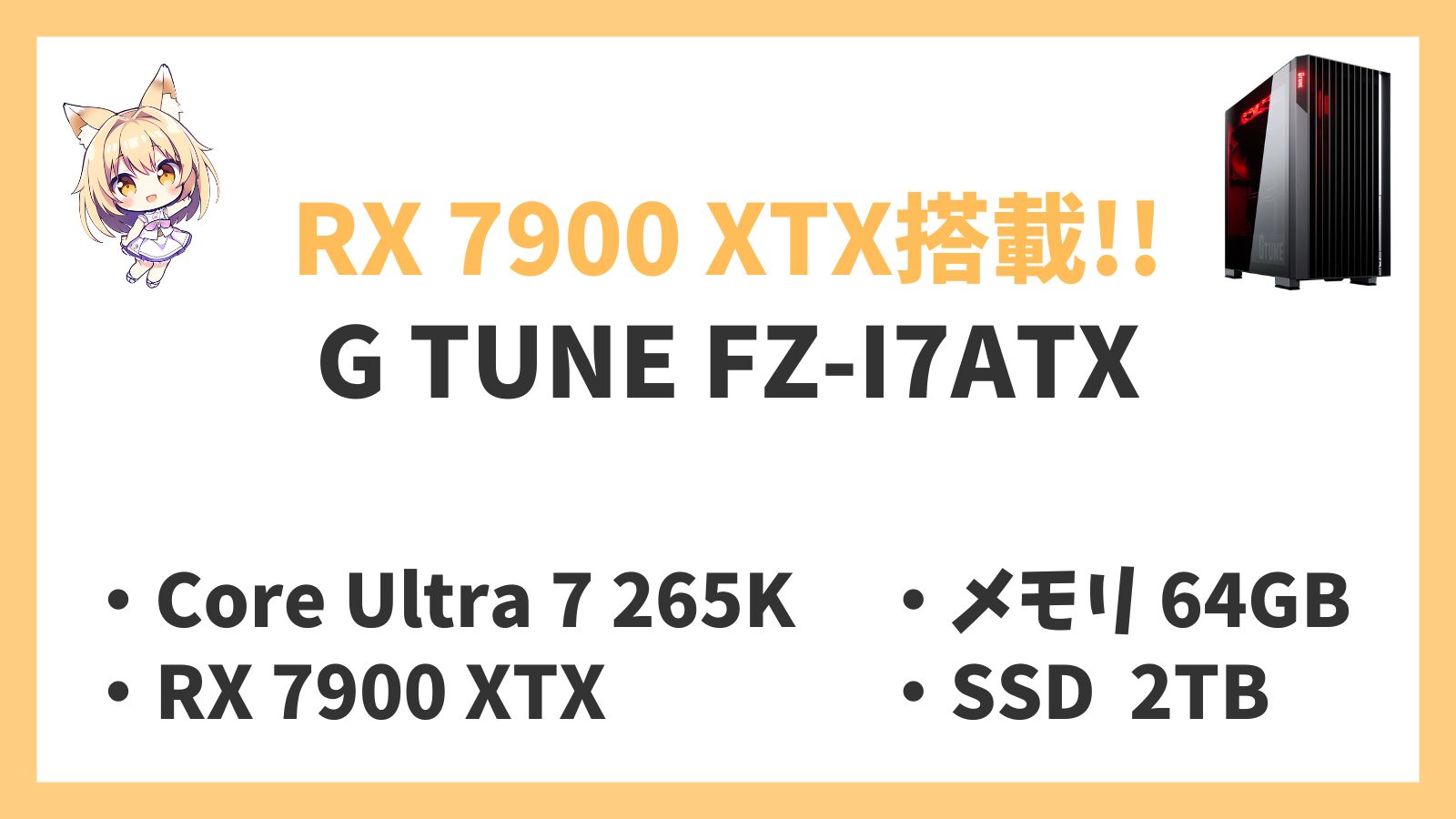G TUNE FZ-I7ATXは「Core Ultra 7-265K」×「RX 7900 XTX」のハイエンド構成ゲーミングPC。