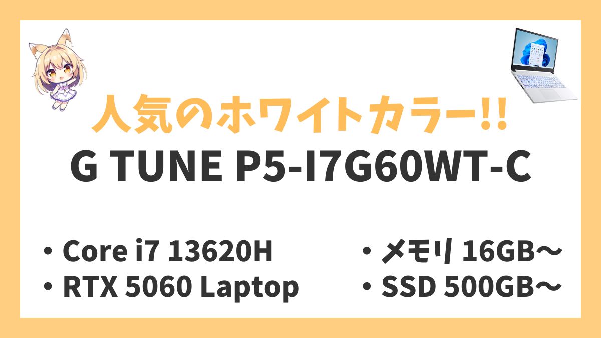 G TUNE P5-I7G60WT-C(ホワイト)のGPUは定番の「RTX 5060 Laptop」。