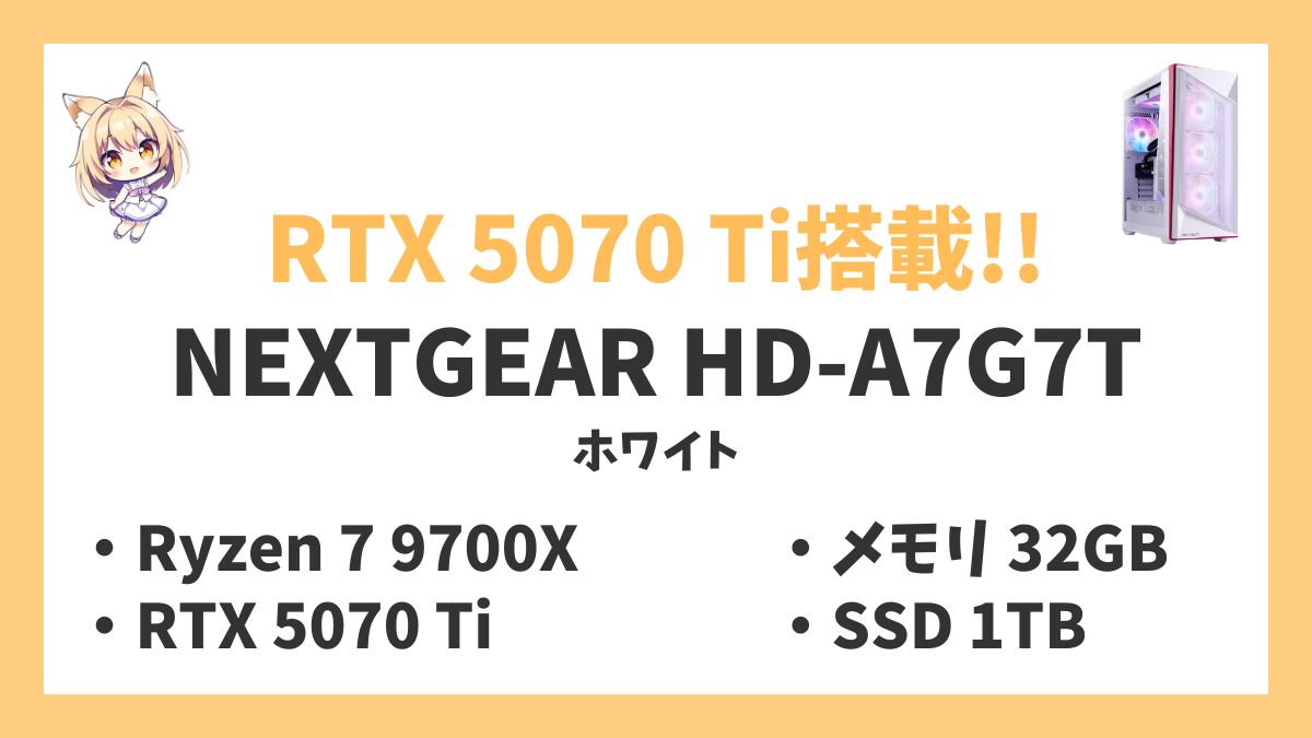 NEXTGEAR HD-A7G7Tは「Ryzen 7-9700X」×「RTX 5070 Ti」のハイスペック構成ゲーミングPC。