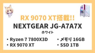 NEXTGEAR JG-A7A6Xは、「Ryzen 7-5700X」×「RX 9060 XT」の構成では最安クラスのゲーミングPCとなっています。