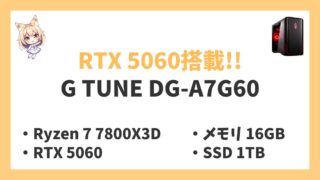 NEXTGEAR JG-A7G6T(ホワイトカラーモデル)は、「Ryzen 7-5700X」×「RTX 5060 Ti」の構成では最安クラスのゲーミングPCとなっています。
