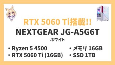 NEXTGEAR JG-A5G6T(ホワイト)レビュー!わかりやすい解説と評価【Ryzen 5 4500×RTX 5060 Ti 16GB】