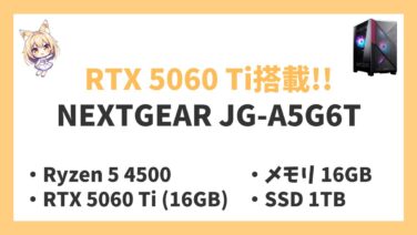 NEXTGEAR JG-A5G6Tレビュー!わかりやすい解説と評価【Ryzen 5 4500×RTX 5060 Ti 16GB】